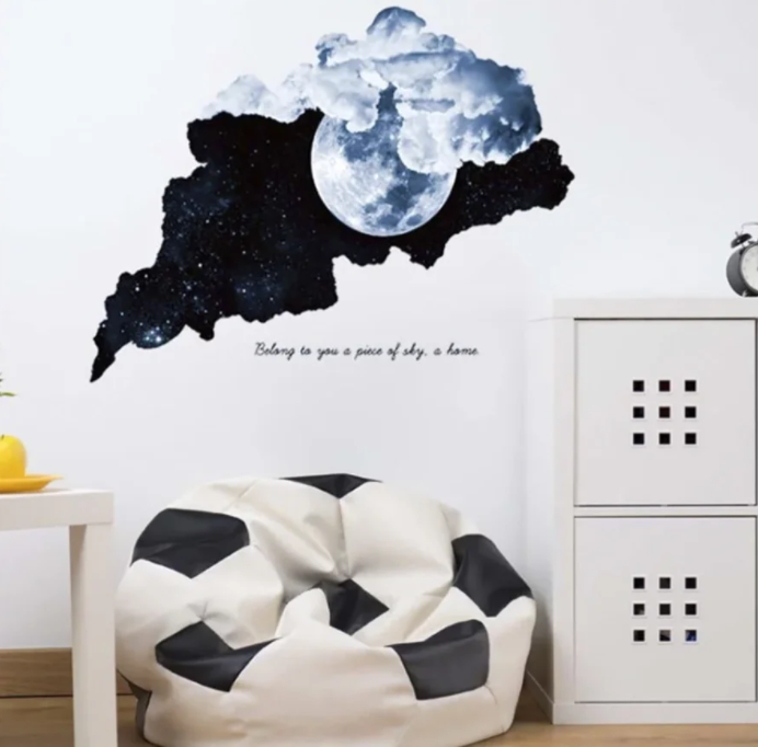 Интерьерная наклейка 3D Луна в ночном небе — это быстрый способ классно украсить свой дом. Наклейки идеально подойдут на кухню, спальню, гостиную, детскую или игровую комнату. Украшение на стену оценят дети в своих спальнях или игровых комнатах.