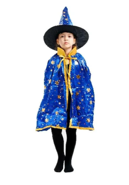 Размеры — высота колпака 38см/диаметр колпака с полями 42см/длина плаща 80см