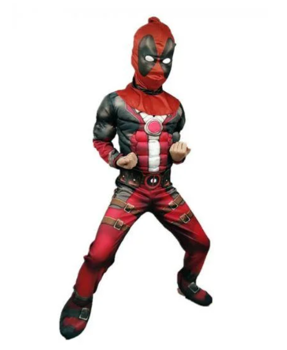 Костюм Дэдпул Deadpool детский. Объемные мышцы. Состоит за комбеза, маски балаклавы и пояса.