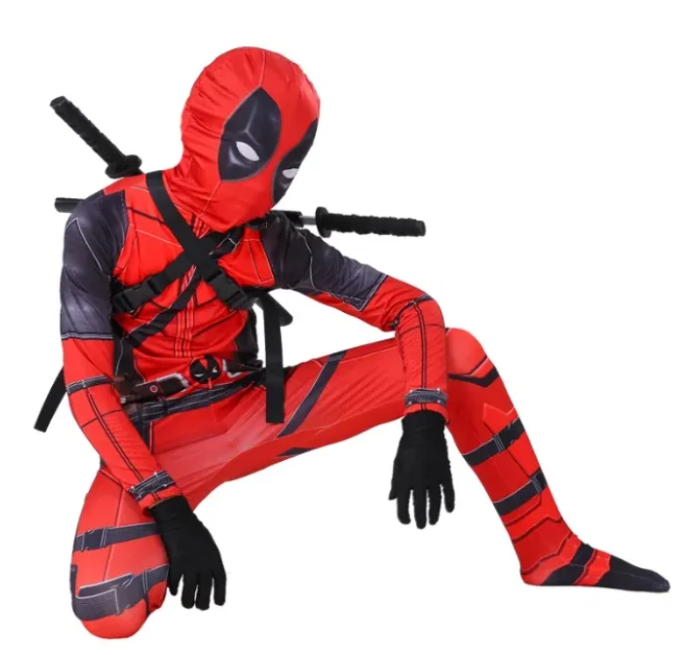 Костюм Дэдпул Deadpool детский. Материал с добавлением спандекса делает костюм очень эластичным. Маска балаклава в которой все отлично видно, а так же съемные перчатки черного цвета.. Отличное качество. На спине застежка молния.