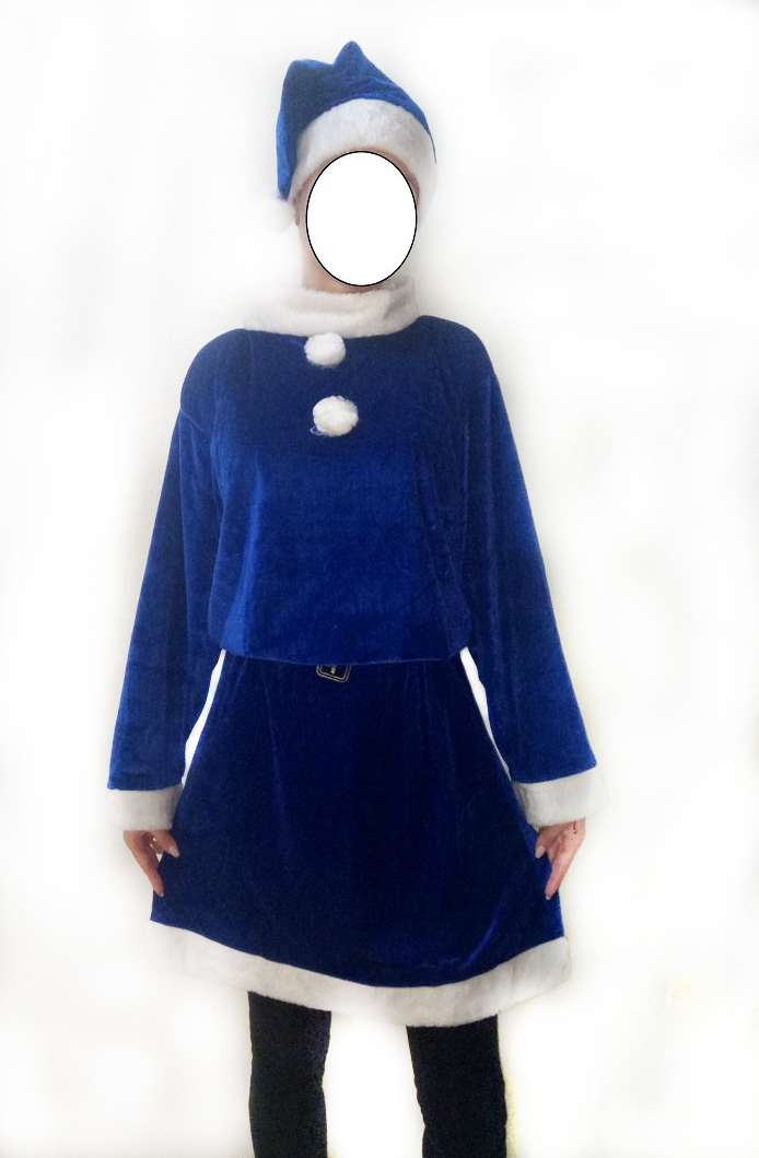 Состоит из платья, пояса и шапочки. Велюровая ткань.