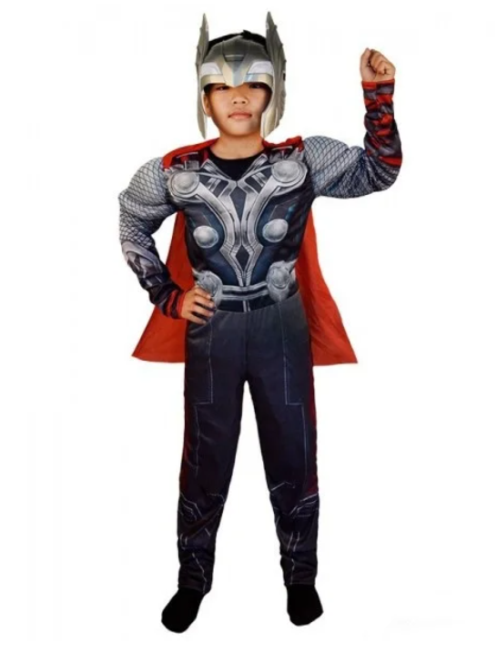 Костюм Тора из к/ф Мстители. Объемные мышцы. Пластиковый шлем. Отличное качество. На спине застежка молния.