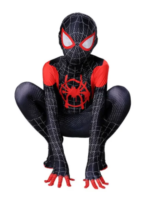 Костюм Человек паук Майлз Моралес детский. Материал с добавлением спандекса делает костюм очень эластичным. Маска балаклава. Отличное качество. На спине застежка молния.