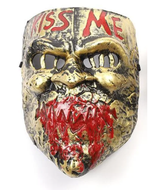Устрашающая маска с кровью и кровавой надписью Kiss me, станет отличным дополнением к ужасающему образу на Хэллоуин или же послужит как самостоятельный аксессуар, чтобы ваш образ был самым ярким!
