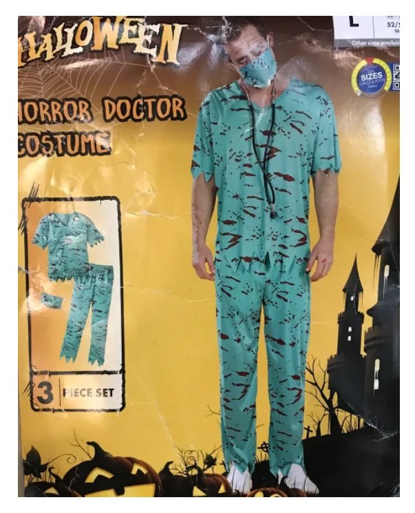 Оригинальный костюм Ужасный доктор мужской на Хелоуин. Состоит из 3 частей(футболка,штаны и защитная маска)