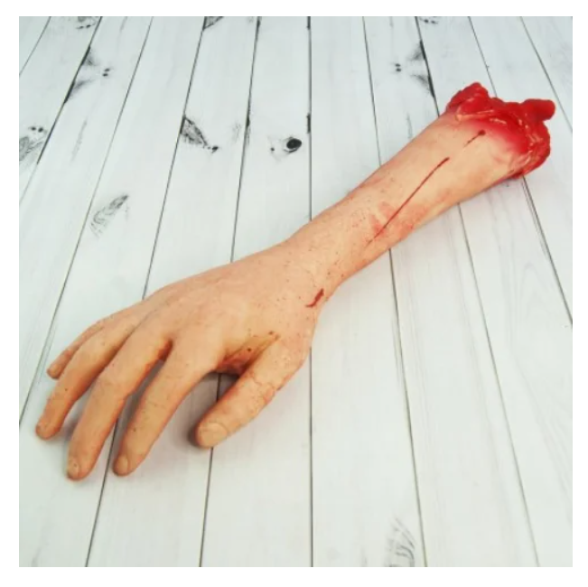 Муляж Оторванная кровавая рука ABC Хэллоуин — прикольный аксессуар для декора помещений в день празднования Хэллоуина.
